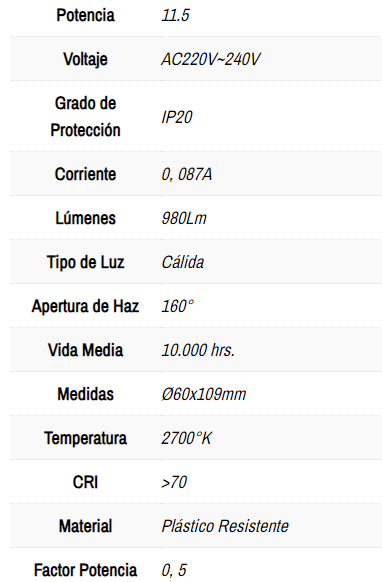 AMPOLLETA LED 11,5W 2700° E27 SONOWCONE