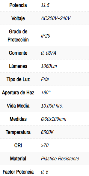 AMPOLLETA LED 11,5W 6500° E27 SNOWCONE