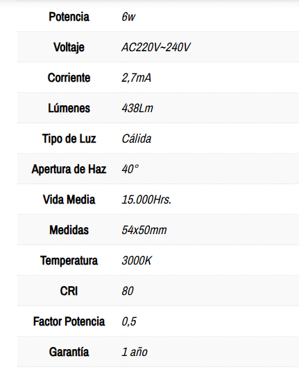 AMPOLLETA LED 6W GU10 3000