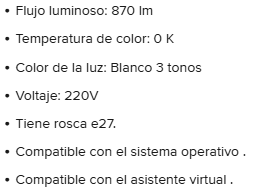 AMPOLLETA LED 9W 3CCT 3000K/4000K/6500K Stock por sucursal Stock por sucursal $ 1.750 cantidad Agregar al carro Avísame cuando llegue