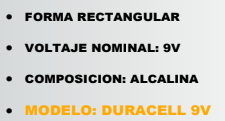 BATERIA 9V DURACEL Stock por sucursal Stock por sucursal $ 5.100 cantidad Agregar al carro Avísame cuando llegue