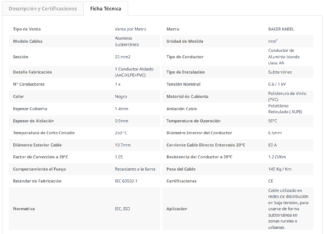 CABLE ALUMINIO XLPE 25MM Stock por sucursal Stock por sucursal $ 1.050 cantidad Agregar al carro Avísame cuando llegue