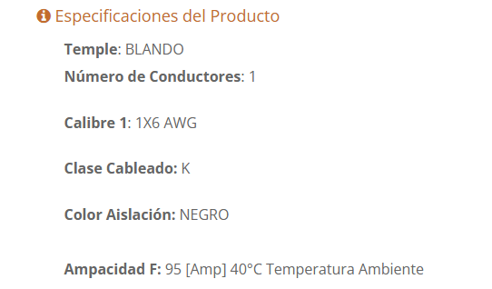Conductor de cobre electrolítico de temple blando con cinta de poliéster separadora, aislación de elastómero termoplástico y retardante a la llama.