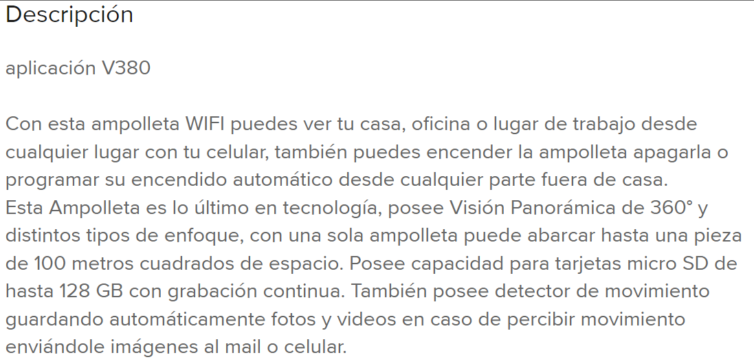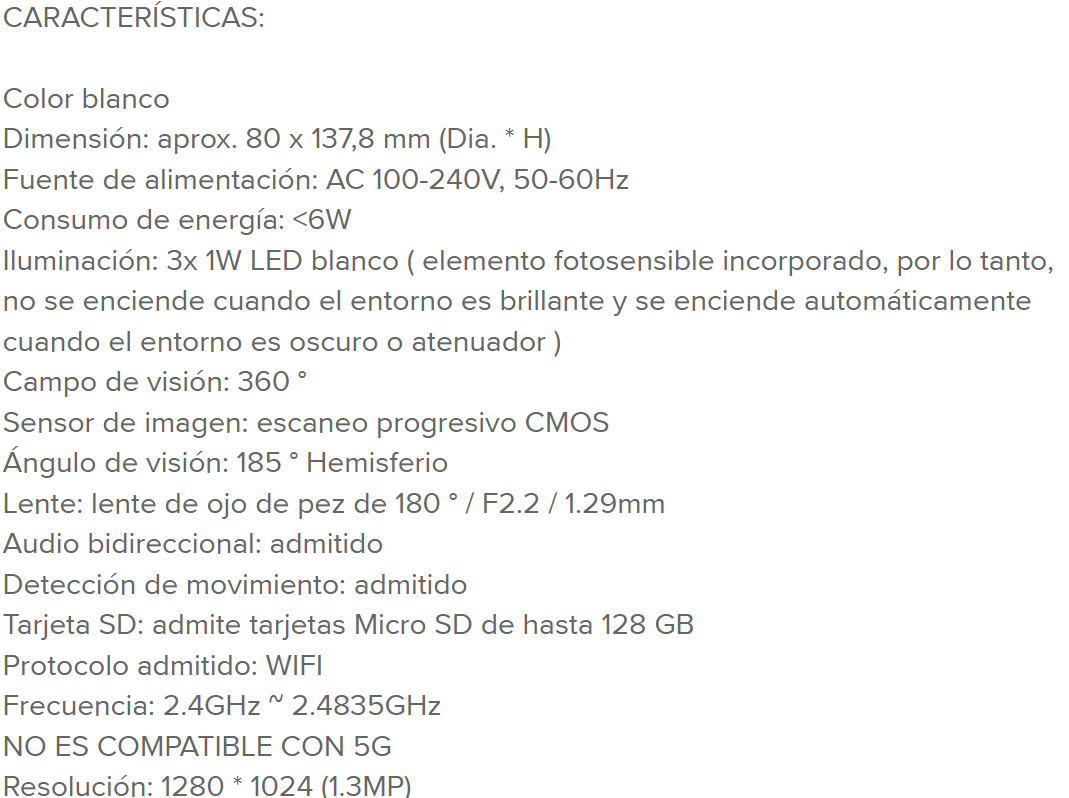 CAMARA WI-FI PANORAMICA TIPO AMPOLLETA Stock por sucursal Stock por sucursal $ 15.770 cantidad Agregar al carro Avísame cuando llegue
