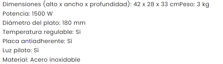 COCINA ELETRICA 1500W 180MM MAGEFESA MAGEFESA Stock por sucursal Stock por sucursal $ 43.100 cantidad Agregar al carro Avísame cuando llegue