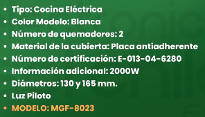 COCINA ELETRICA 2000W 165/130MM MAGEFESA Stock por sucursal Stock por sucursal $ 46.300 cantidad Agregar al carro Avísame cuando llegue