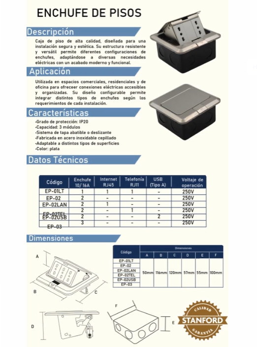 ENCHUFE DOBLE 10/16A + TOMA DOBLE USB DE PISO METALICO PUSH UP STANFORD Stock por sucursal Stock por sucursal $ 80.550 cantidad Agregar al carro Avísame cuando llegue