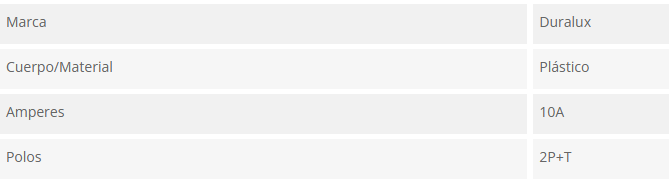 ENCHUFE HEMBRA VOL 2P+T 10A GRIS 250V DURALUX Stock por sucursal Stock por sucursal $ 1.750 cantidad Agregar al carro Avísame cuando llegue