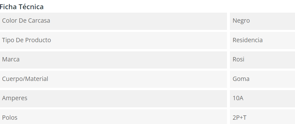 ENCHUFE HEMBRA VOL 2P+T 10A NEGRO ROSI Stock por sucursal Stock por sucursal $ 2.480 cantidad Agregar al carro Avísame cuando llegue