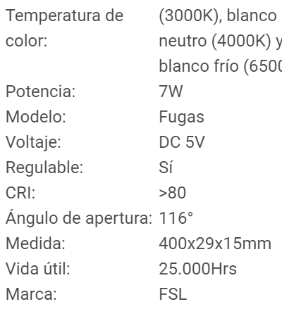 EQUIPO LED LINEAL FUGAS 7W 5V PARA CENEFA 6500 3000 4000