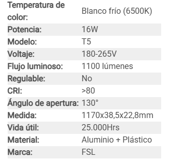 EQUIPO LED T5 16W 6500K FSL Stock por sucursal Stock por sucursal $ 5.570 cantidad Agregar al carro Avísame cuando llegue