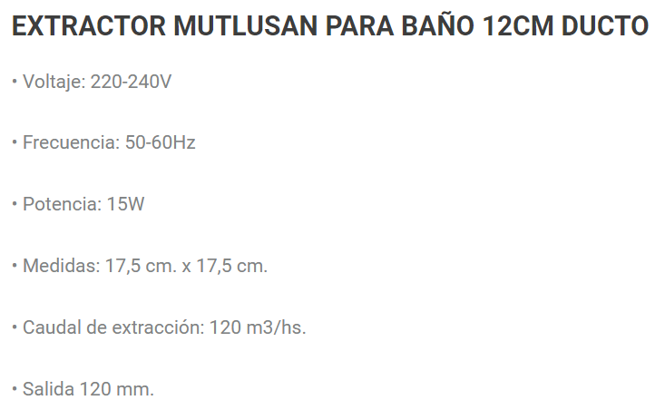 EXTRACTOR DE AIRE 5" MUTLUSAN Stock por sucursal Stock por sucursal $ 16.300 cantidad Agregar al carro Avísame cuando llegue