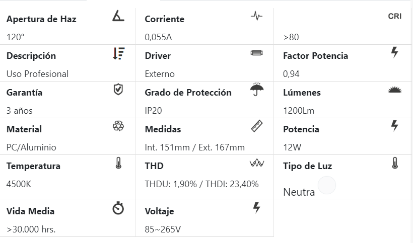 "Plafón embutido LED circular de 12W, versión de luz neutra. Con cuerpo de aluminio de alta calidad. Y un amplio ángulo de apertura para ofrecer una iluminación general con una elevada eficiencia. Posee difusor esmerilado que confiere una iluminación general sin reflejos. Ideal para sustituir a los tradicionales halógenos, llegando a ahorros de hasta el 90% y a plafón embutidos de bajo consumo convencionales. Fácil instalación, larga vida de la luminaria LED, de 30.000 horas y libre de mantenimiento. La solución perfecta para crear un ambiente elegante, en obra nueva o rehabilitación, para el hogar, oficinas, recepciones, museos, bares, entre otros. Cuentan con una garantía de 2 años. Producto de la línea profesional."