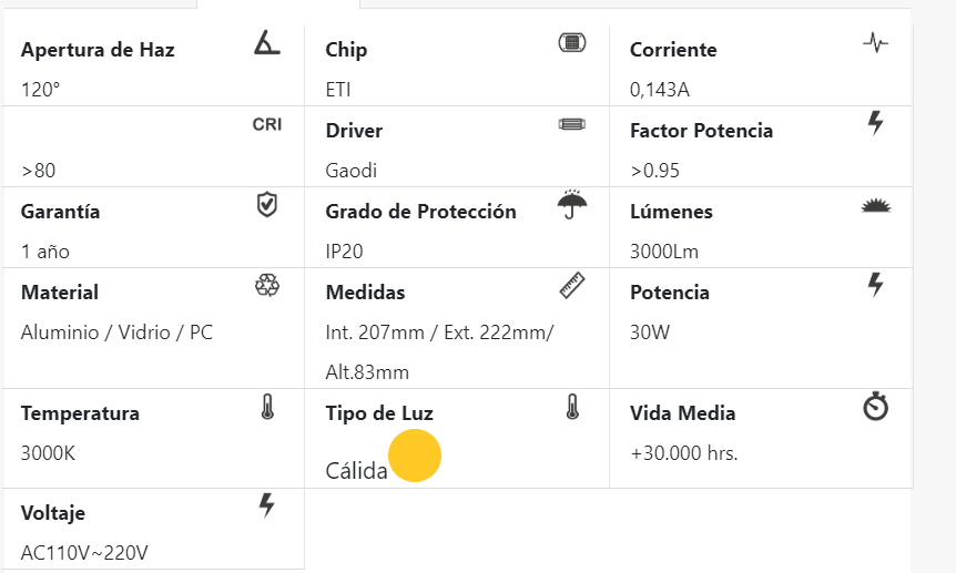 "Embutido DownLight 30W circular COB, en su versión luz cálida. Están fabricadas con el más alto standar de calidad, ideal para los proyectos más sofisticados y que necesitan un producto con las máximas garantías. Construidos en aluminio de alta calidad, con un acabado blanco ideal para cualquier ambiente. Incluyen un gran disipador de aluminio para alargar la vida de la lámpara LED y un driver LED de gran calidad que no está integrado en el interior de la luminaria. Fácil reemplazo y larga vida útil de 30.000 horas. La instalación es sumamente sencilla, conectar y listo. Proporciona una máxima luminosidad y garantía de calidad. Por su tamaño, diseño, potencia y escaso consumo, estas luminarias LED son ideales para iluminar escaparates en tiendas y centros comerciales, museos, barras de bares, vitrinas, etc. El sustituto ideal de los tradicionales halógenos, con una eficiencia energética del 90%. Cuentan con una garantía de 1 año."