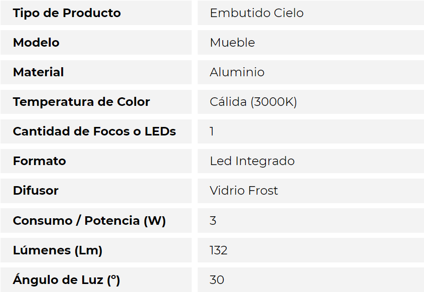 FOCO EMB LED 3W 3000° DOWNLIGHT 5.2X3CMS