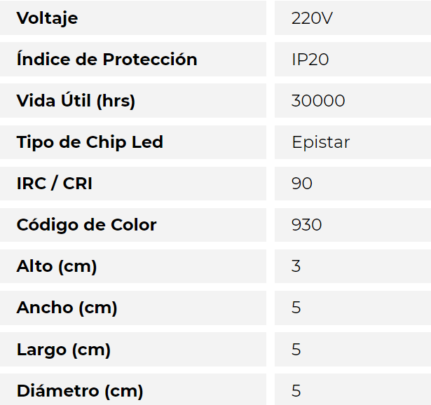 Pequeño downlight redondo. Ideal para ser instalado en interiores como living, comedores, cocinas, baños, etc. Incluye driver interno. Disponible en color blanco, gris y negro con luz cálida. Mide Ø5 diámetro x Ø4 diámetro de corte x 3 alto cm.