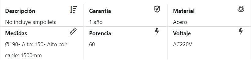 LAMPARA COLGANTE E27 NEGRA (F) Stock por sucursal Stock por sucursal $ 13.700 cantidad Agregar al carro Avísame cuando llegue