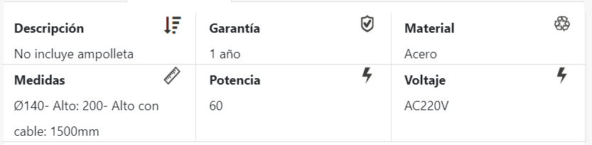 LAMPARA COLGANTE E27 NEGRA (G) Stock por sucursal Stock por sucursal $ 14.300 cantidad Agregar al carro Avísame cuando llegue