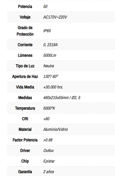 Luminaria pública 50W, tienen grandes ventajas frente a las luminarias convencionales al no requerir canalizaciones de cables, integran todos los componentes en una sola pieza. Combina todos los últimos avances en tecnología LED, los mejores componentes y los materiales de mejor calidad. Utiliza el driver Outlux, referente en el mercado por su gran estabilidad, del mismo modo, utiliza LEDs Epistar de alta luminosidad. Optimizando la energía acumulada para que esté garantizada la luz durante toda la noche. – Cuerpo realizado en aluminio no corrosivo 100% – Cuenta con certificación SEC y es producto de la línea profesional. – Gran resistencia al agua, polvo e impactos (IP65) – Diseñado para una óptima ventilación de la luminaria. – Disipador con filos redondeados para evitar cortes al manipularlo. – Óptica vial asimétrica longitudinal. – Diseño de lentes que mejora ostensiblemente el flujo luminoso. – Diseño de apertura de clip que hace más fácil las labores de mantenimiento. – Factor de potencia >0.98.
