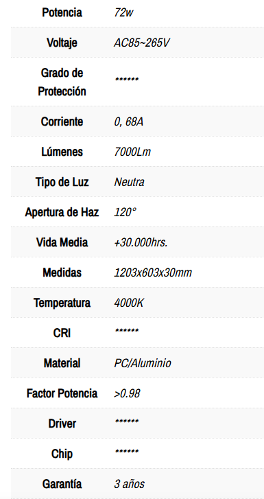 PANEL LED 72W 120X60 4000° FP0.98
