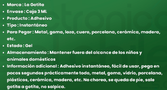 PEGAMENTO TIPO LA GOTITA GEL 3 GRS FENEDUR Stock por sucursal Stock por sucursal $ 2.770 cantidad Agregar al carro Avísame cuando llegue