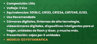 PILA 123 LITHIUM ENERGYZER Stock por sucursal Stock por sucursal $ 4.100 cantidad Agregar al carro Avísame cuando llegue