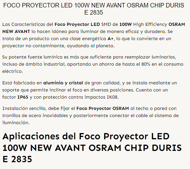 PROYECTOR LED 100W 3000° NEW AVANT OSRAM Stock por sucursal Stock por sucursal $ 36.380 cantidad Agregar al carro Avísame cuando llegue