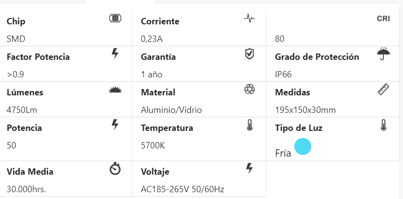 Si buscas iluminación de alta calidad y eficiencia, el proyector Polux de 50W en tono frío es la elección perfecta para ti. Con un factor de potencia superior a 0.9 y grado de protección IP66, esta luminaria es resistente a la intemperie y garantiza un rendimiento óptimo incluso en condiciones climáticas adversas. Además, su diseño compacto y elegante permite una fácil instalación en cualquier lugar donde se requiera una iluminación potente y duradera.