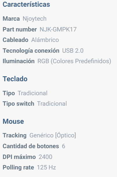 TECLADO GAMER CON MOUSE INCLUIDO RGB CABLEADO GHOST KNIGHT 2 Stock por sucursal Stock por sucursal $ 3.950 cantidad Agregar al carro Avísame cuando llegue