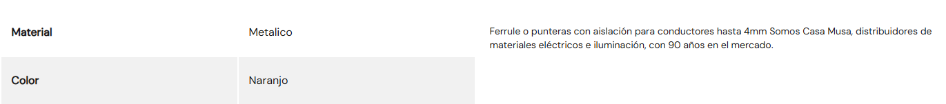 TERMINAL FERRUL 4MM NARANJO (BOLSA 100) MUSA Stock por sucursal Stock por sucursal $ 3.850 cantidad Agregar al carro Avísame cuando llegue