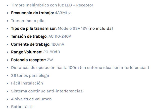 TIMBRE INALAMBRICO 2W 36 TONOS NEGRO Stock por sucursal Stock por sucursal $ 9.500 cantidad Agregar al carro Avísame cuando llegue
