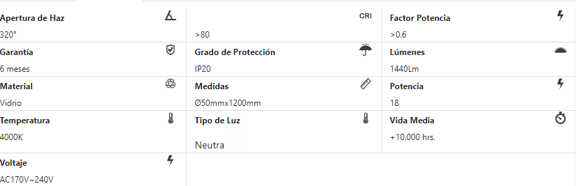 TUBO LED 18W 4000° 1200MM LUMEX Stock por sucursal Stock por sucursal $ 1.630 cantidad Agregar al carro Avísame cuando llegue
