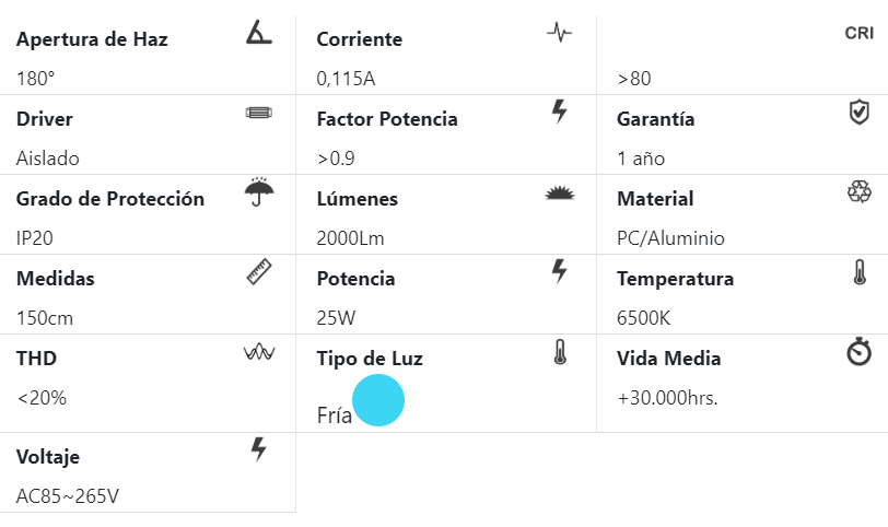 TUBO LED 25W 6500° 1.5 MTS VIDRIO FARETTO Stock por sucursal Stock por sucursal $ 6.307 cantidad Agregar al carro Avísame cuando llegue
